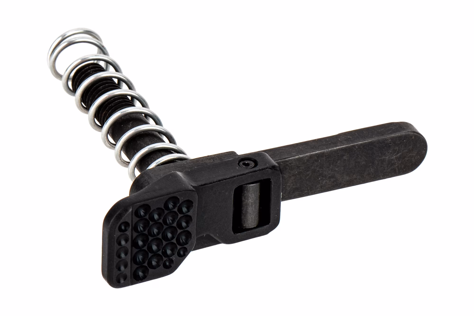 FCD has also integrated design features to help reduce the risk of accidental activations. The shaft of the steel magazine catch has been shortened 0.03″, or a full rotation of the magazine catch button. This modification reduces the height of the right hand magazine release button to help mitigate accidental magazine drops. The other feature is the included 10.9 lb spring. Standard MIL-SPEC mag release springs are relatively weak at 8.3 lbs, and this can make dropping your mag unintentionally as easy as slinging your rifle. With the stiffer spring, this risk is significantly reduced!