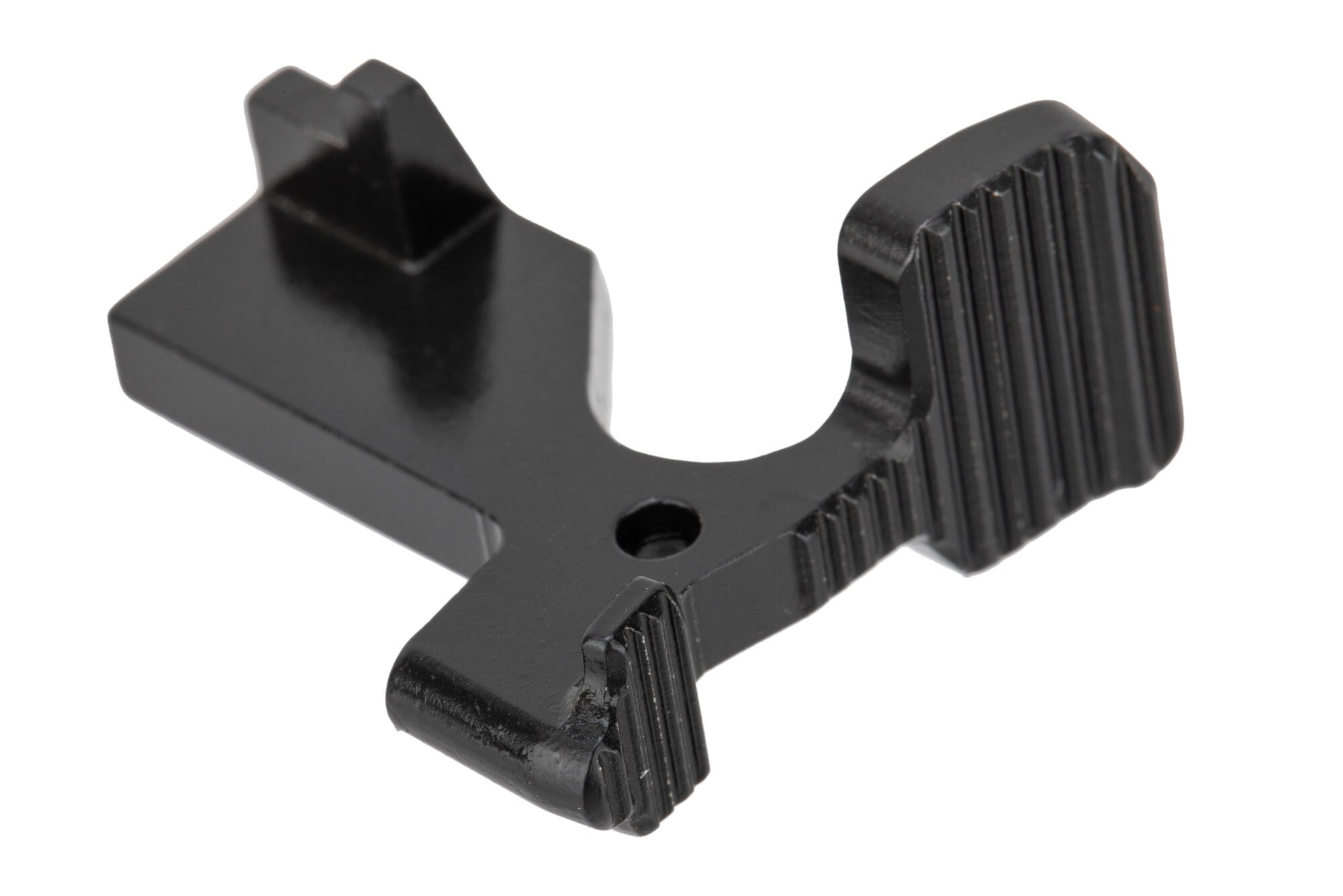The lower paddle on the Forward Controls protrudes further and is angled at 10 degrees to offering more surface area while the top paddle is larger and provides a 5-degree angle at the lower 50% and 10-degree angle at the upper 50% cant, making it easier for the palm or thumb to access. Forward biased (FB) is for right hand users that wrap their left hand around the magazine well and use their left thumb to press the bolt catch’s upper paddle. The Forward Controls FB version has the upper paddle shifted to the muzzle end to facilitate this reloading method. This ABC/R is manufactured from strong billet 8620 alloy steel and heat treated with black nitrided finish for a long service life. The Forward Controls ABC/R v3 is includes bolt catch roll pin, plunger and spring.